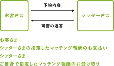 マッチングは、お客さまが直接シッターさんに指名をいただき、シッターさまの判断で可否の返答をしていただきます。